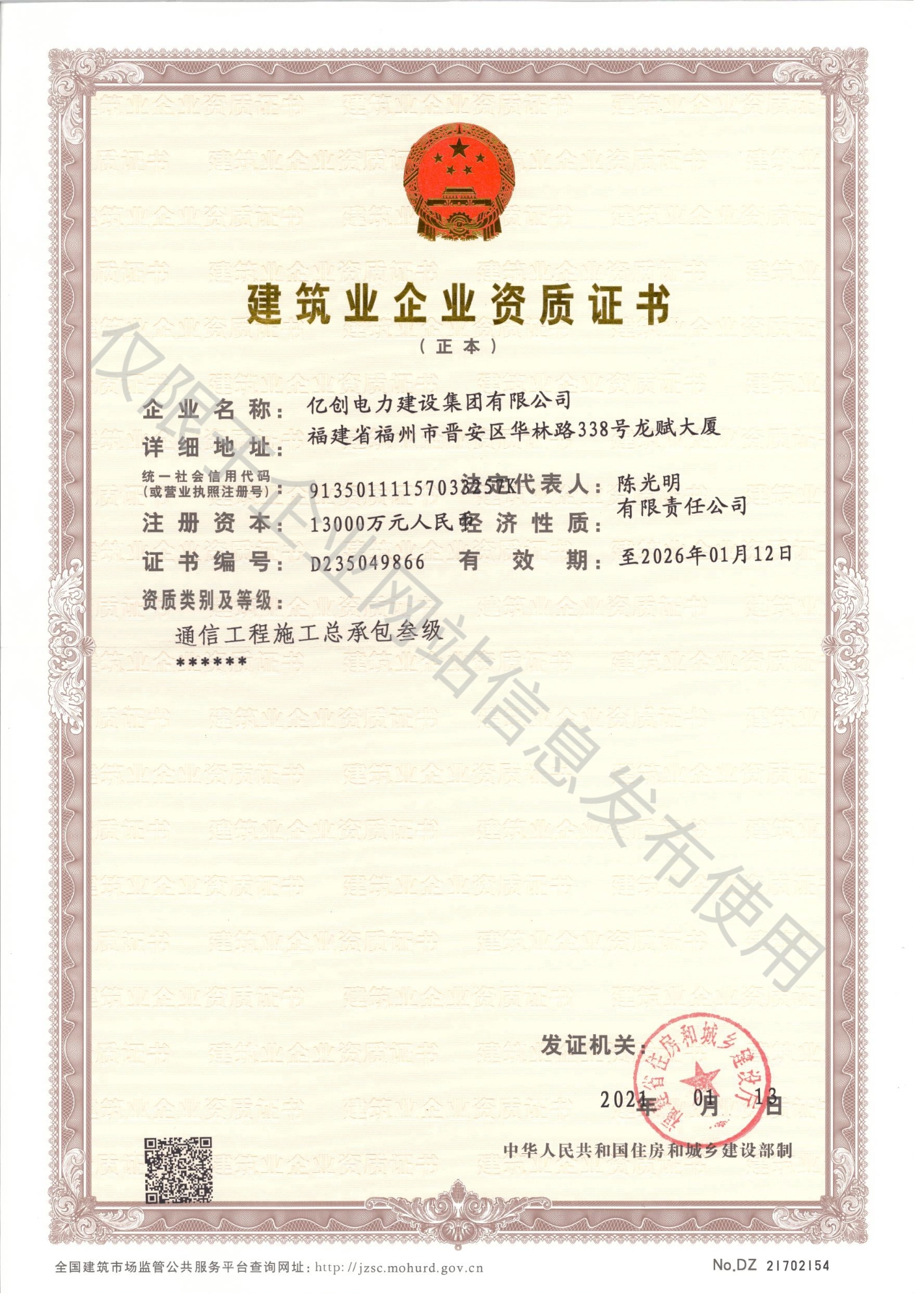 億創電力建設集團是以電力工程施工建設、水電開發與投資、風電投資、電力設備檢修、售電、設備制造等多產業的股份制企業。集團注冊資本叁億叁仟多萬元人民幣,具備建設部頒發的電力工程施工總承包叁級、機電工程施工總承包叁級、輸變電工程專業承包叁級資質和國家能源局頒發的承裝(修、試)電力設施叁級資質。