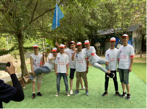 下車后步行幾十米,爬了高高的臺階,來到了一片大草地,這對于我們平時不運動的人來說,真的夠嗆!老鷹教官說我們將在這里舉行我們的第一個活動:“趣味團建”于是乎“戰爭的號角”拉響了!